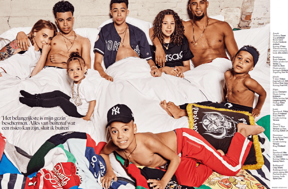 Op de cover van het oktobernummer van Vogue Nederland staat Nederlands trots Anouk met haar complete gezin. De zangeres schittert naast haar grote liefde Dominique en haar zes kinderen Benjahmin Kingsley, Elijah Jeremiah, Phoenix Ray, Jesiah Dox, Sion Jethroe en Jelizah Rose. Voor het eerst en exclusief voor Vogue met zijn allen voor de camera van Marc de Groot, bij SugarFactory!
