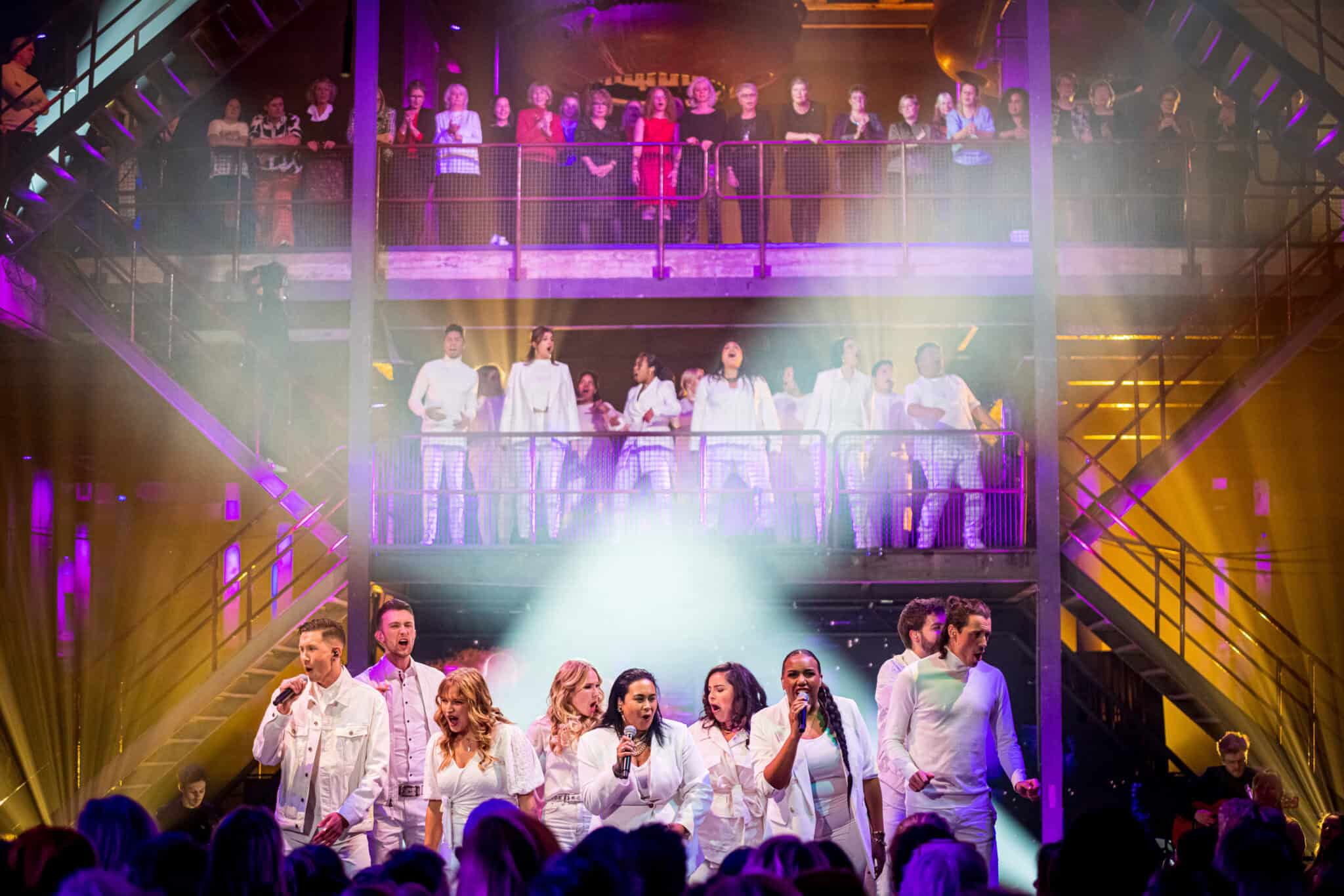 The filming took place in the Middenfabriek. The distinctive staircase in the middle of the space was used by the presenters, singers and the choir. Together with the light effects, this resulted in beautiful footage.