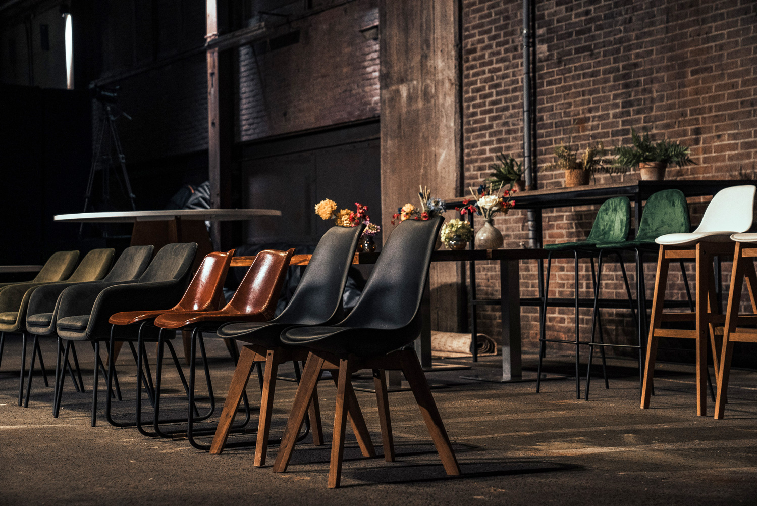 For the set-up of the pop-up studio SugarFactory worked together with BloemBloem, specialised in dressing up events in the broadest sense of the word. Because, apart from the equipment, how do you turn a factory hall into a studio? Elise Kooi of BloemBloem: ”We have created a studio setting that can easily be adjusted to each production. We have chosen to enhance the industrial character of SugarFactory with some beautiful eye-catchers such as distinctive flower creations on pedestals”. The standard set-up is with an oval, white standing table, but there is more furniture available on site to create various settings. In addition, the entire studio is arranged in such a way that keeping a distance of one and a half meters is not a problem.